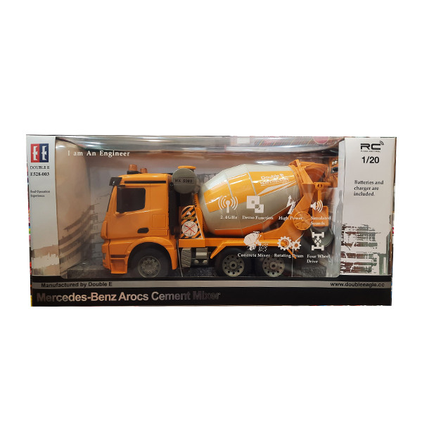 ماشین کنترلی میکسر با قابلیت چرخش دیگ حمل بتن چزخ ها سلیکونی تو پر دکمه روشن شدن ماشین دکمه بوق دکمه حرکت اتومات قابلیت چرخش دیگ در دو جهت رادیو کنترل دسته پلی استیشنی روشن شدن چراغ های عقب و روی سقف