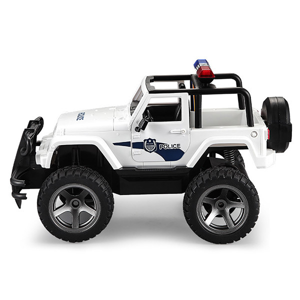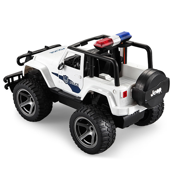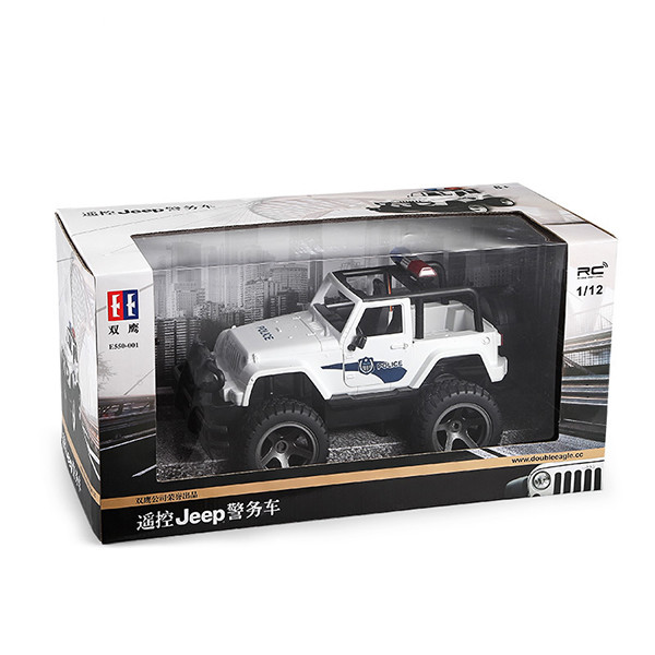 ماشین پلیس jeep دابل ایگل شامل یک ماشین اسباب بازی با قابلیت هدایت با کنترل از راه دور است. این ماشین اسباب بازی از جنس پلاستیک فشرده تولید شده است و دارای جزئیات بسیار خوبی است که ماشین را مشابه نمونه واقعی کرده است.